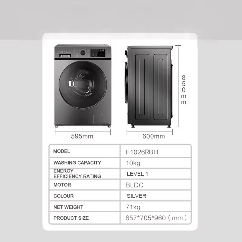 Dimensions compactes 600 × 595 × 850 mm, parfaitement adaptées aux cuisines et buanderies modernes.